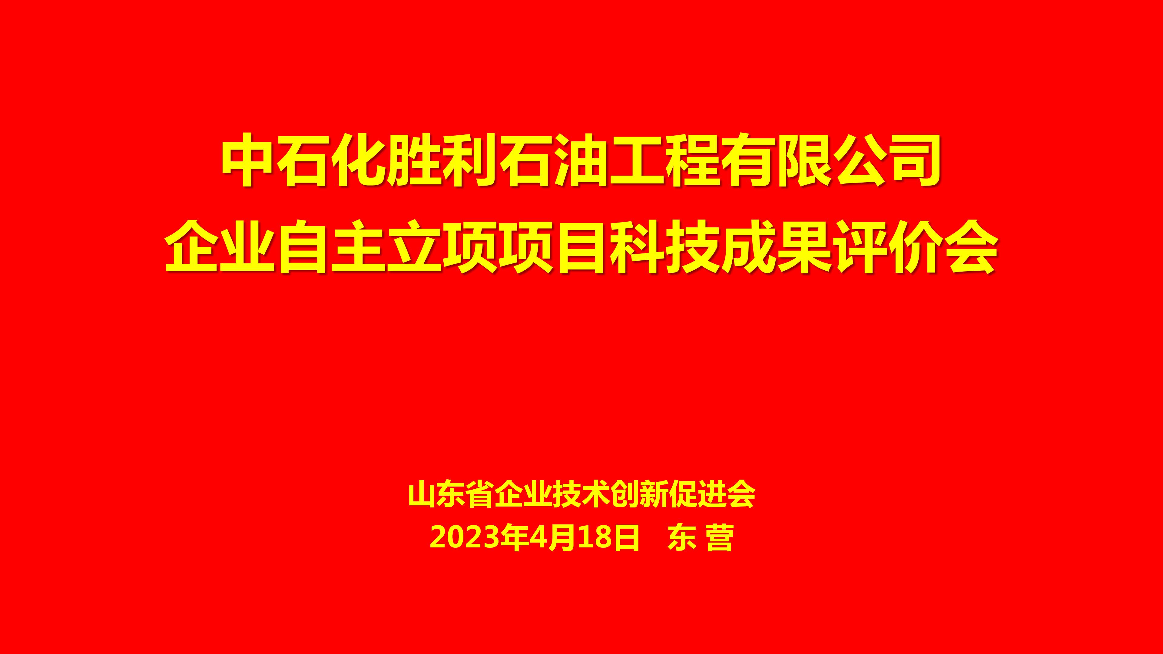 2023年4月18日,受中石化胜利石油工程有限公司委托,山东省企业技术创新促进会在东营组织专家召开企业自立项目科技成果评价会。