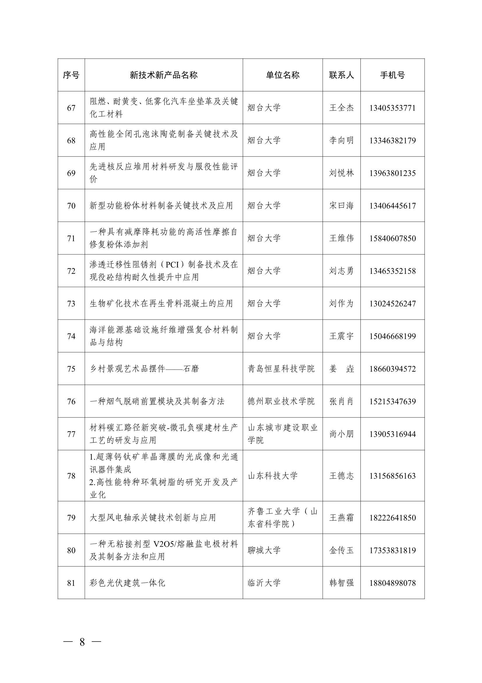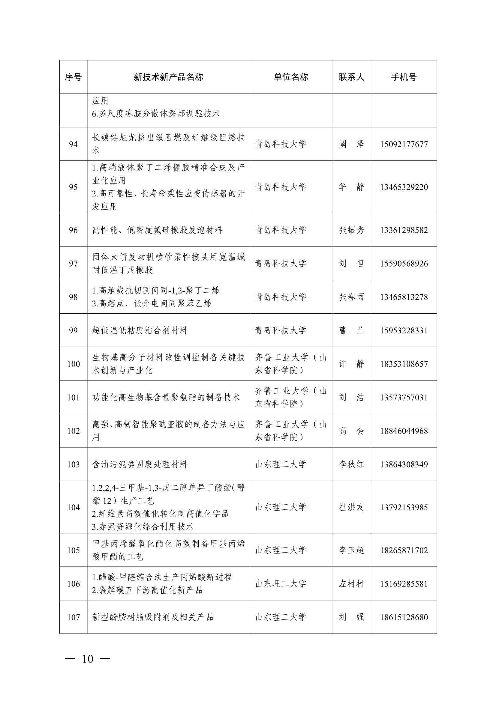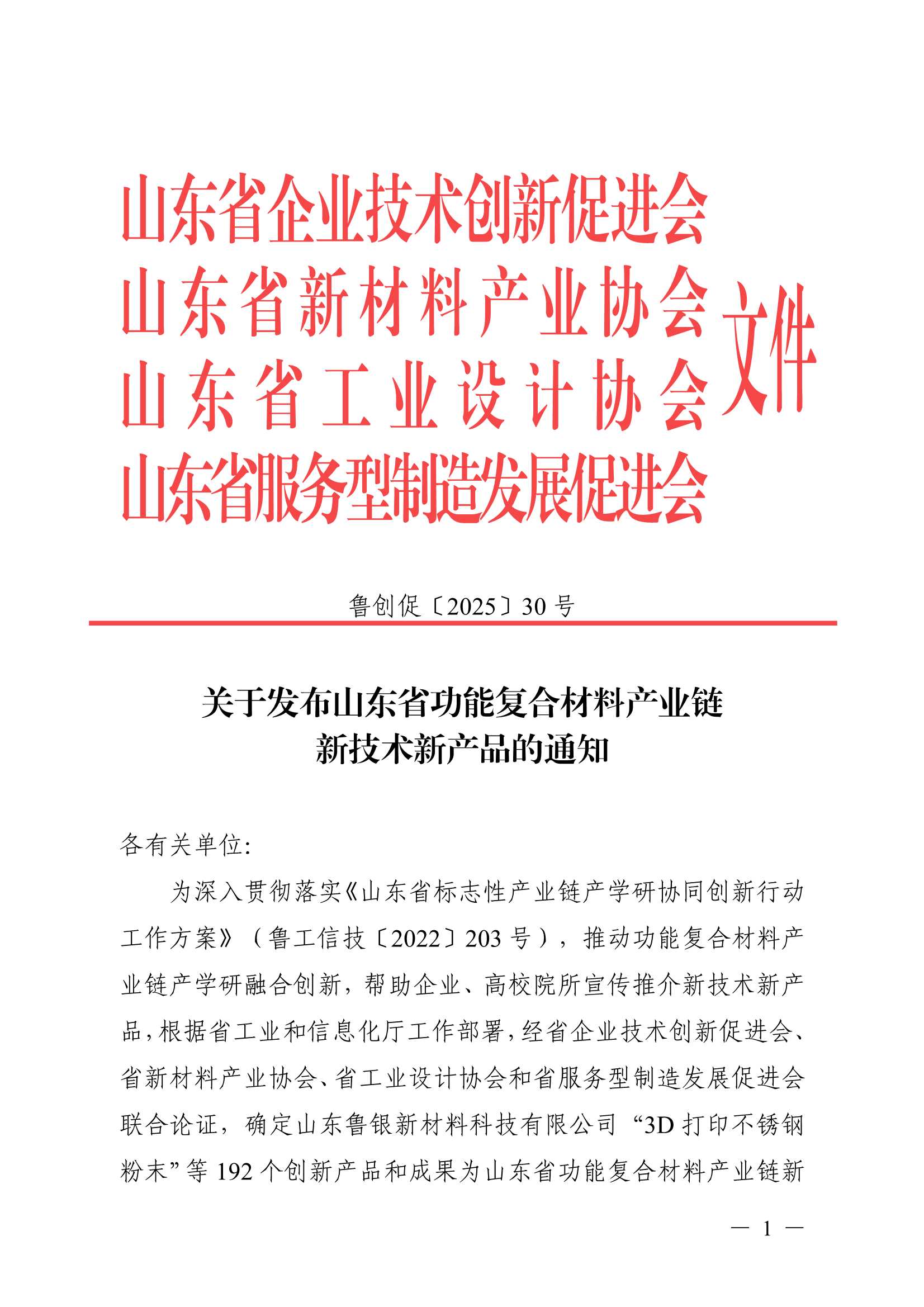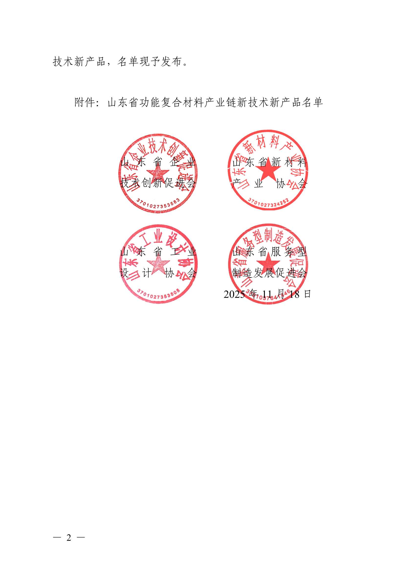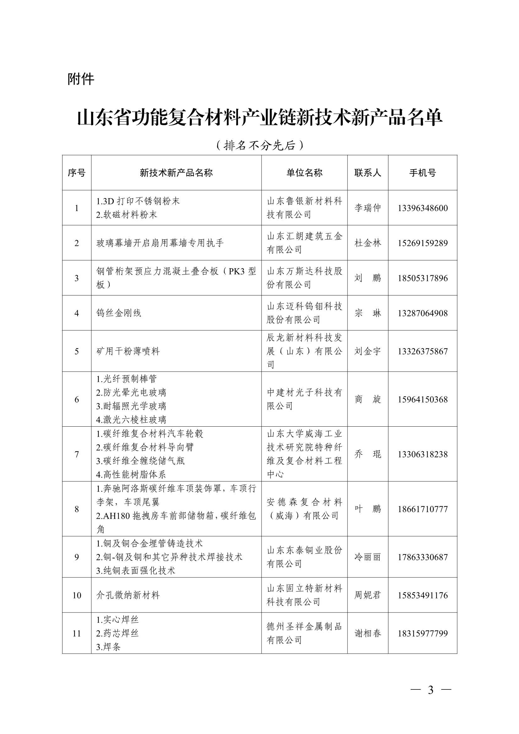 关于发布山东省功能复合材料产业链新技术新产品的通知