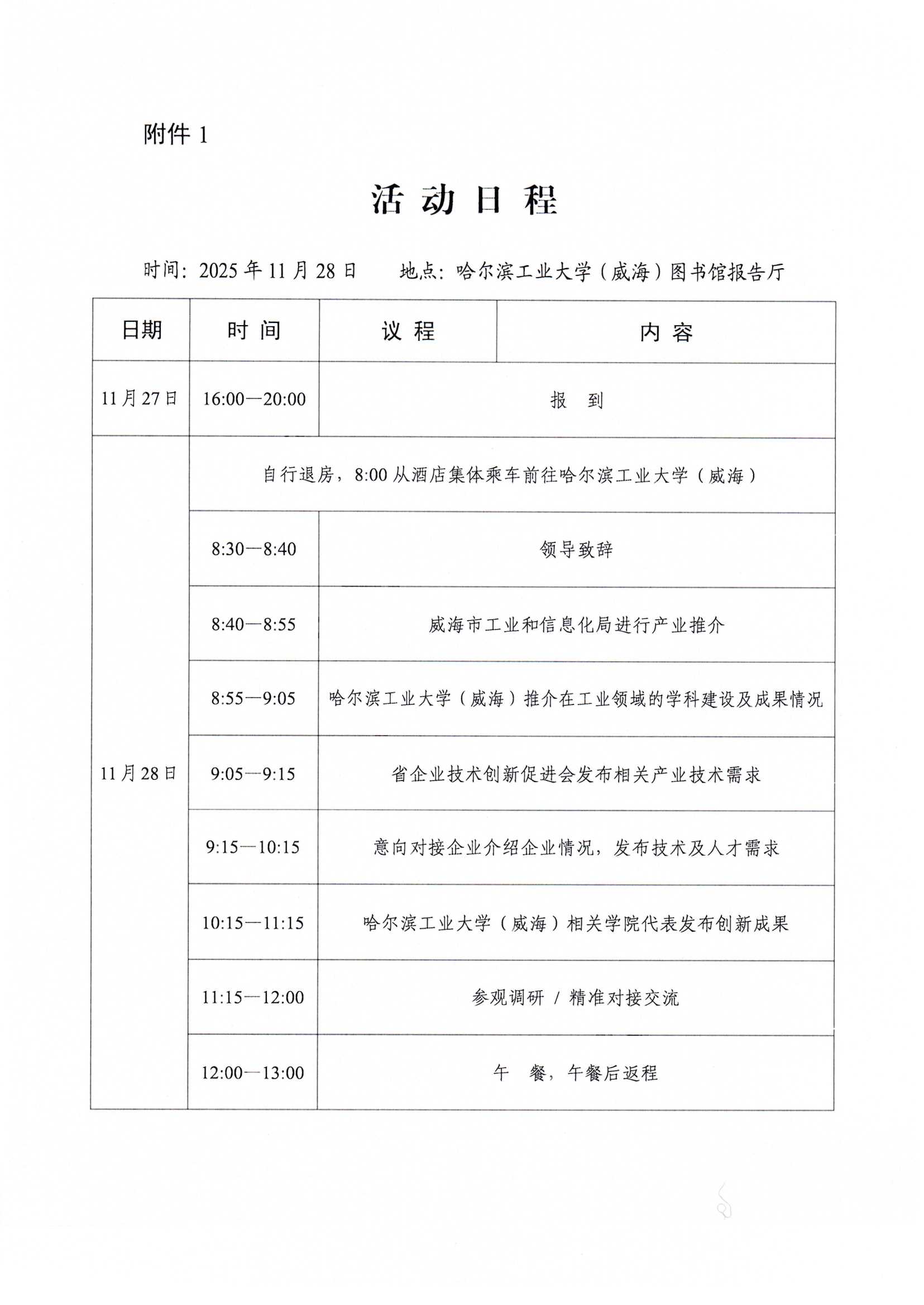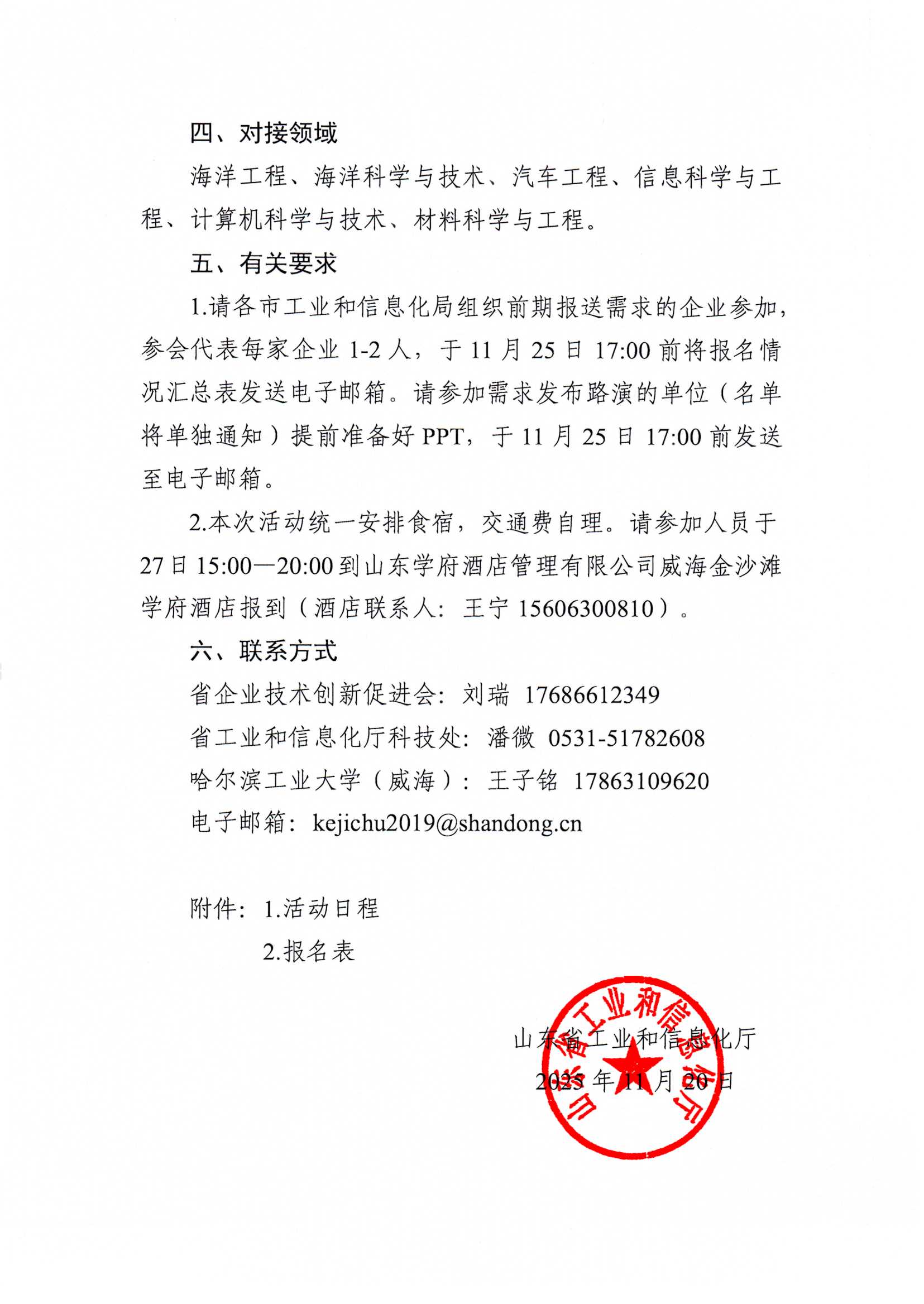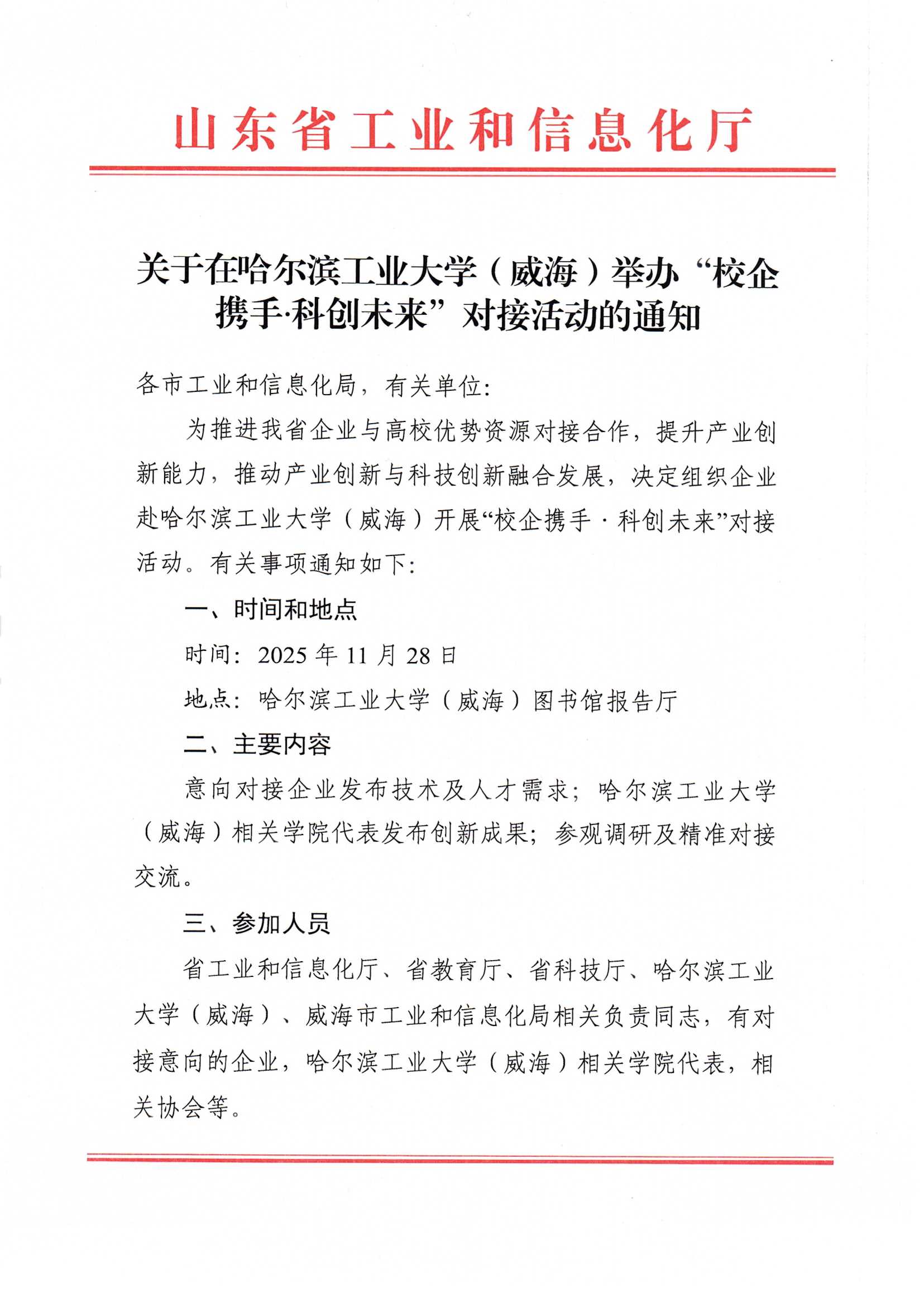 关于在哈尔滨工业大学(威海)举办“校企携手·科创未来”对接活动的通知