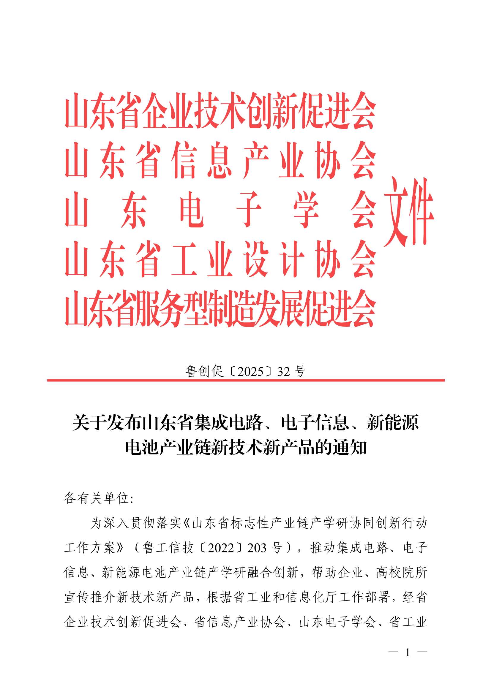 关于发布山东省集成电路、电子信息、新能源电池产业链新技术新产品的通知