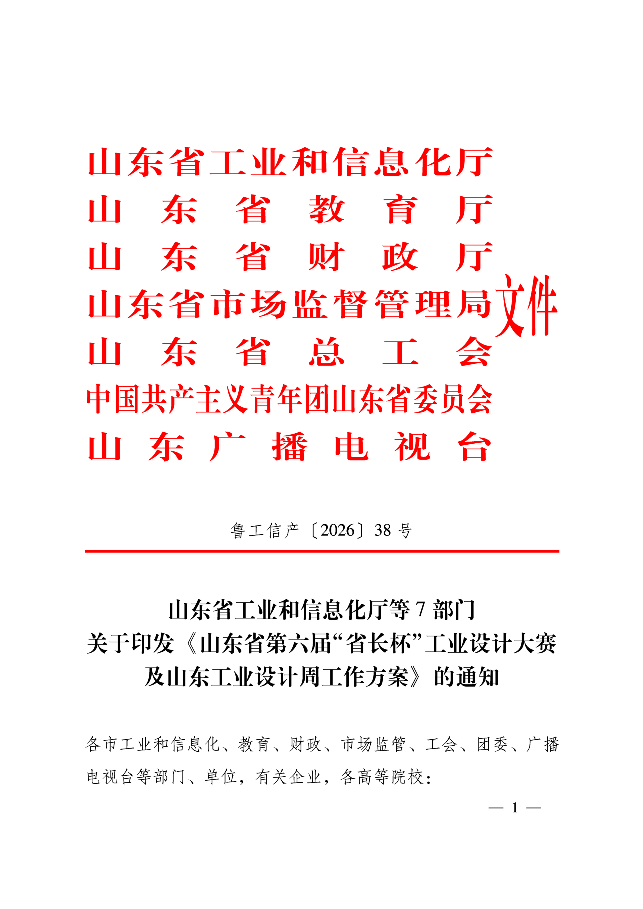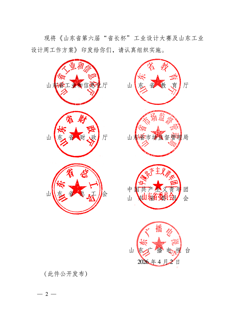 山东省工业和信息化厅等7部门关于印发《山东省第六届“省长杯”工业设计大赛及山东工业设计周工作方案》的通知